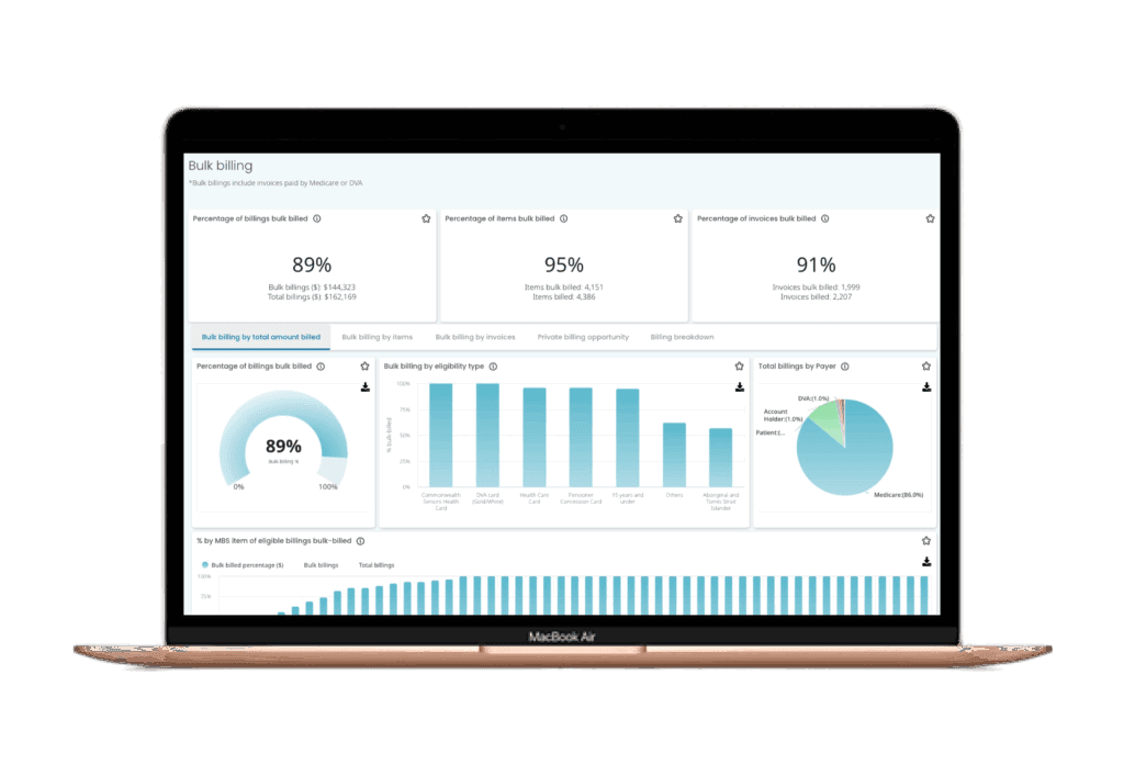 Cubiko simplifies complex data by consolidating over 500 data points into user-friendly dashboards. It offers features like MBS eligibility checks, billing optimisation, and appointment tracking, aiding practices in improving financial performance and patient care.